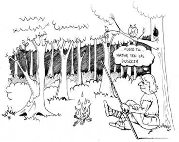 dokumentach historycznych na przestrzeni ostatnich 300 lat! I tak nasi przodkowie, określając ten las „puszczą” i nadając nazwy jego różnym fragmentom, krok po kroku zaczęli go poznawać. Zatrzymajmy się na chwilę przy nazwach. Człowiek otoczony rzeczami tego samego „gatunku” zaczyna zauważać coraz więcej różnic pomiędzy nimi. Nasi dziadkowie znali tylko ławę. My rozróżniamy już ławę, ławkę, stół, stolik, biurko. Eskimosi mają ponad 60 słów określających różne rodzaje tego, co my zawsze nazywamy „śniegiem”. A zapytajcie Włocha, Anglika, Hiszpana jak przetłumaczą na swoje języki słowo „wykrot”? Będą mieć taki sam problem, jak my z tym śniegiem. Skoro nie doświadczamy go na tyle różnych sposobów, co Eskimosi, więc nie mamy potrzeby, by go na wiele sposobów nazywać. Czy wiecie, że dla Niemca grzybem jest zasadniczo tylko pieczarka? Jestem przekonana, że w tym miejscu Wasze babcie byłyby oburzone, bo przecież jadalne są też: hryb, czerwonohołowik, babka, kania, opeńka, maśluki i wiele innych grzybów. A zagadka? Ile różnych nazw używają Wasi dziadkowie, wskazując na sosnę? EMK