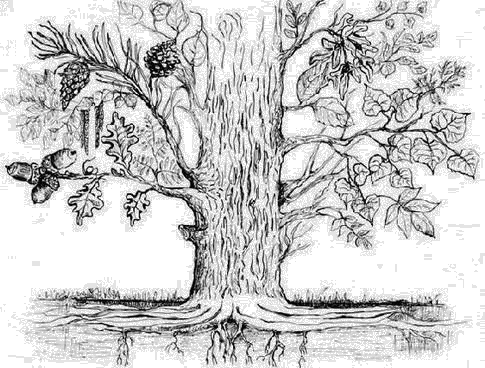 I. NASZE DRZEWA Znajdź na rysunku 5 gatunków drzew i wypisz je.