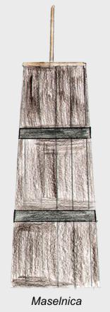 Przedmiot, który mnie najbardziej zafascynował, to maselnica. Na tych terenach używano innej nazwy - „masłobojka”, ale obydwa wyrazy oznaczały to samo. Maselnica służyła w dawnych czasach do wyrobu masła, ponieważ ludzie nie kupowali masła w sklepie, bo po prostu nie było ani sklepu, ani masła. Wlewano śmietanę do maselnicy, zamykano pokrywkę i kołkiem, który miał na końcu kółko z dziurkami, ubijano masło. Ubijano dopóty, dopóki ubijak, czyli to kółko, nie oblepi się grudkami masła. Jak sprawdzić to? Kiedy już ciężko nam ubijać, zdejmujemy pokrywkę i sprawdzamy, czy na dnie jest wielka gruda masła. Jak masło jest już gotowe, wyjmujemy je z maselnicy i płuczemy zimną wodą. Tak robiła moja babcia, i tak też robi moja mama. Babcia dostała maselnicę w prezencie ślubnym. Takim sposobem maselnica w naszej rodzinie jest już 62 lata, czyli od 1941 roku. Ubijanie masła to super frajda. Jest to frajda dla mnie i dla mojego psa, ponieważ on uwielbia zlizywać śmietanę, która często wychlapuje się na podłogę. Wystarczy poczekać 20-30 minut i można zajadać się pysznym masłem domowej roboty. Sama często pomagam przy pracy, ale nie wychodziło mi to tak zręcznie, jak dla mojej mamy. Kończy się moja opowieść o maselnicy i sztuce robienia masła. Myślę, że jest wiele interesujących rzeczy, ale ta jest dla mnie najciekawsza. Magdalena Kalinowska