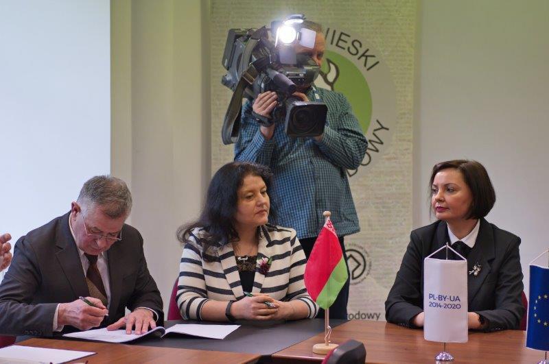 3 marca 2020 r. w siedzibie Białowieskiego Parku Narodowego w Białowieży została podpisana umowa partnerska między partnerami z Polski i Białorusi, dotycząca współpracy przy realizacji transgranicznego projektu „Przyrodnicza skarbnica ponad granicami”. To niezwykle ważne wydarzenie było okazją do kolejnego spotkania zespołu projektowego. Oprócz pracowników Białowieskiego Parku zaangażowanych w projekt oraz reprezentantów wszystkich partnerów, spotkanie dokumentowali i relacjonowali dziennikarze z mediów lokalnych i z województwa. Podczas podpisania umowy wszyscy partnerzy podkreślili niezwykle istotną rolę działań projektowych w zakresie ochrony cennych skarbów przyrody i rozwoju szeroko pojętej edukacji obywatelskiej, jak też zdeklarowali chęć kontynuacji współpracy na niwie edukacji ekologicznej. Po zakończeniu oficjalnej części spotkania, korzystając z przepięknej pogody, goście z Białorusi udali się do Rezerwatu Pokazowego Żubrów, gdzie zwiedzili nowy obiekt Parku - Pawilon Edukacyjny.