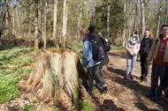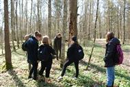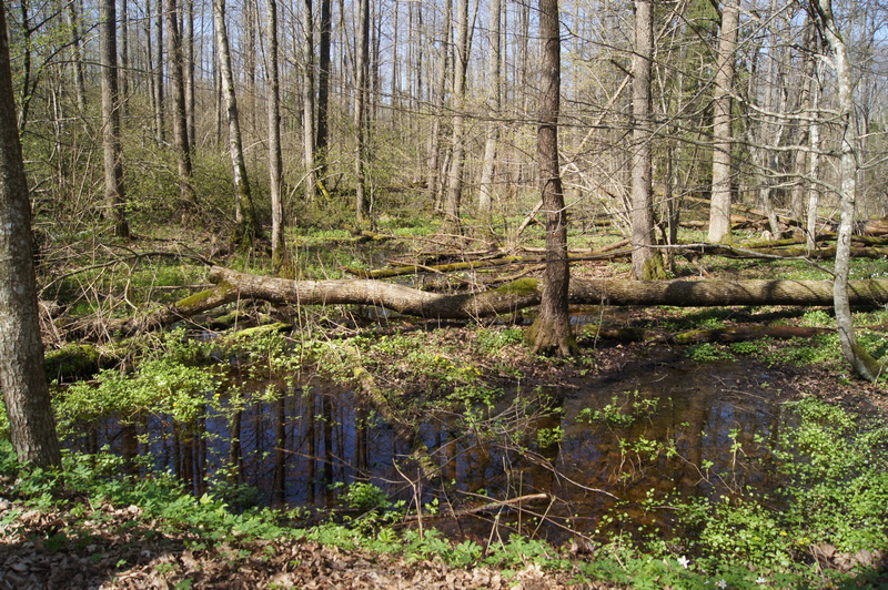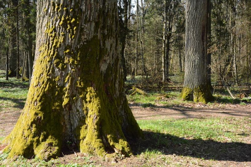 Zajęcia terenowe w pierwszym dniu Obozu zaplanowaliśmy na szlakach wytyczonych w części Białowieskiego Parku włączonej w 1996 r. w jego granice. Jednym z nich jest „Carska Tropina” – pieszy szlak wiodący wzdłuż doliny Narewki, starą drogą carską usypaną jeszcze w XIX w. Szlak prezentuje unikalne leśne krajobrazy, przeplatane podmokłymi łąkami. Tam obserwowaliśmy przyrodę lasów pochodzenia naturalnego (na niektórych fragmentach zmienionych w wyniku gospodarki człowieka) w grądach, ze specyficznymi o tej porze roku, geofitami; w podmokłych olsach; w łęgach charakteryzujących się wysokim poziomem wody. Uczyliśmy się interpretacji obserwacji terenowych – odnaleźliśmy „świeże” tropy wilka podążającego za jeleniem, odchody tego drapieżnika; „latrynę” borsuków; usłyszeliśmy głosy wydawane przez ziębę, świstunkę i rzekotkę drzewną.